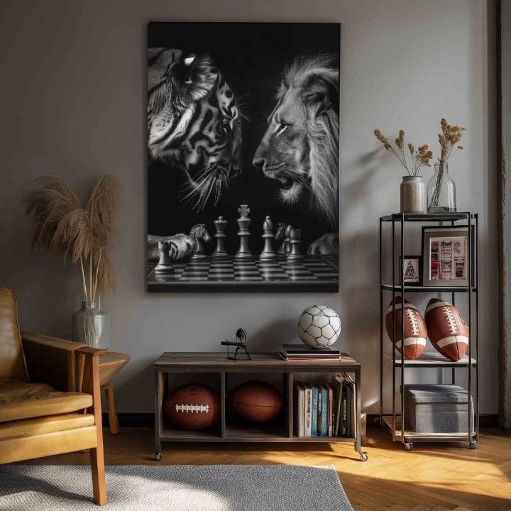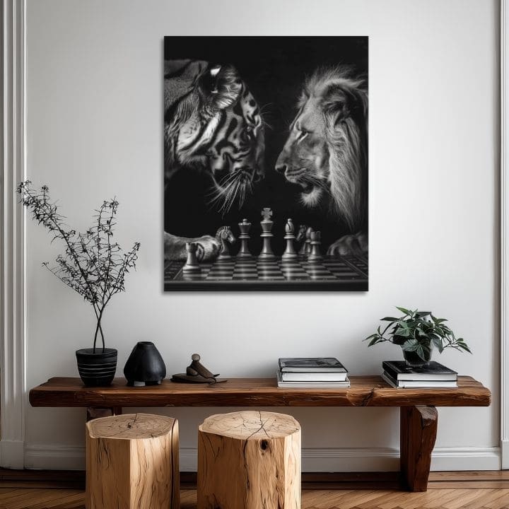 Introduction » НОВОСТИ И АКЦИИ » Изображението на платното Лъв и тигър - Стратегия за шах
