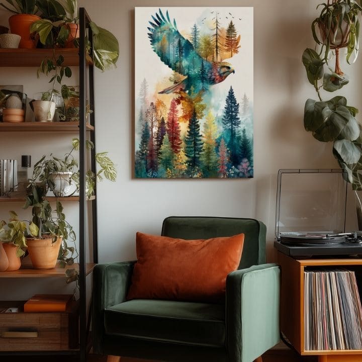 Изображението върху платно Полетът на орела - динамичен мотив на природата